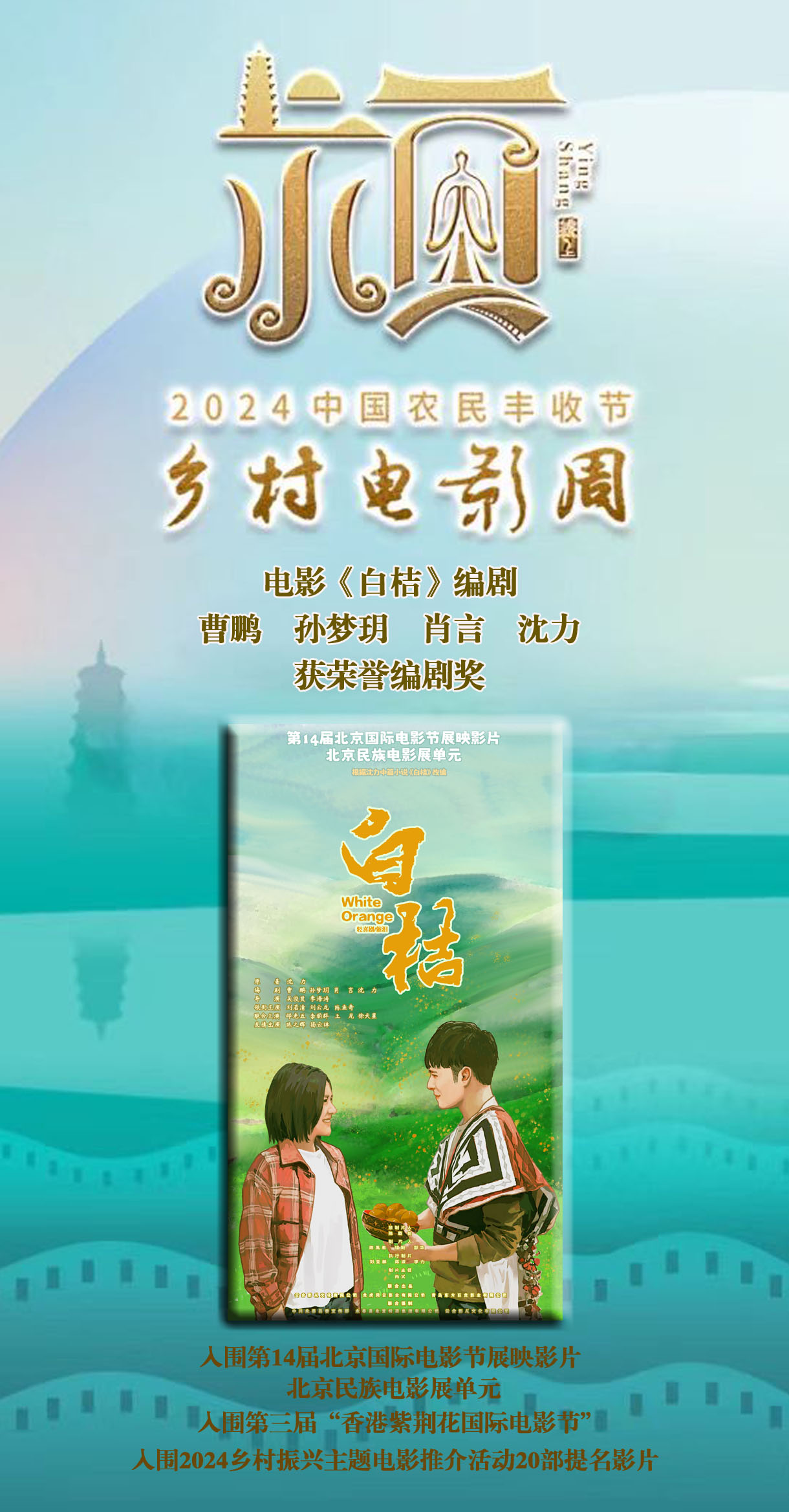 在云南昭通市永善县全景拍摄的电影《白桔》荣获“2024中国农民丰收节·乡村电影周”荣誉编剧奖,入围2024乡村振兴主题电影推荐活动20部提名影片。