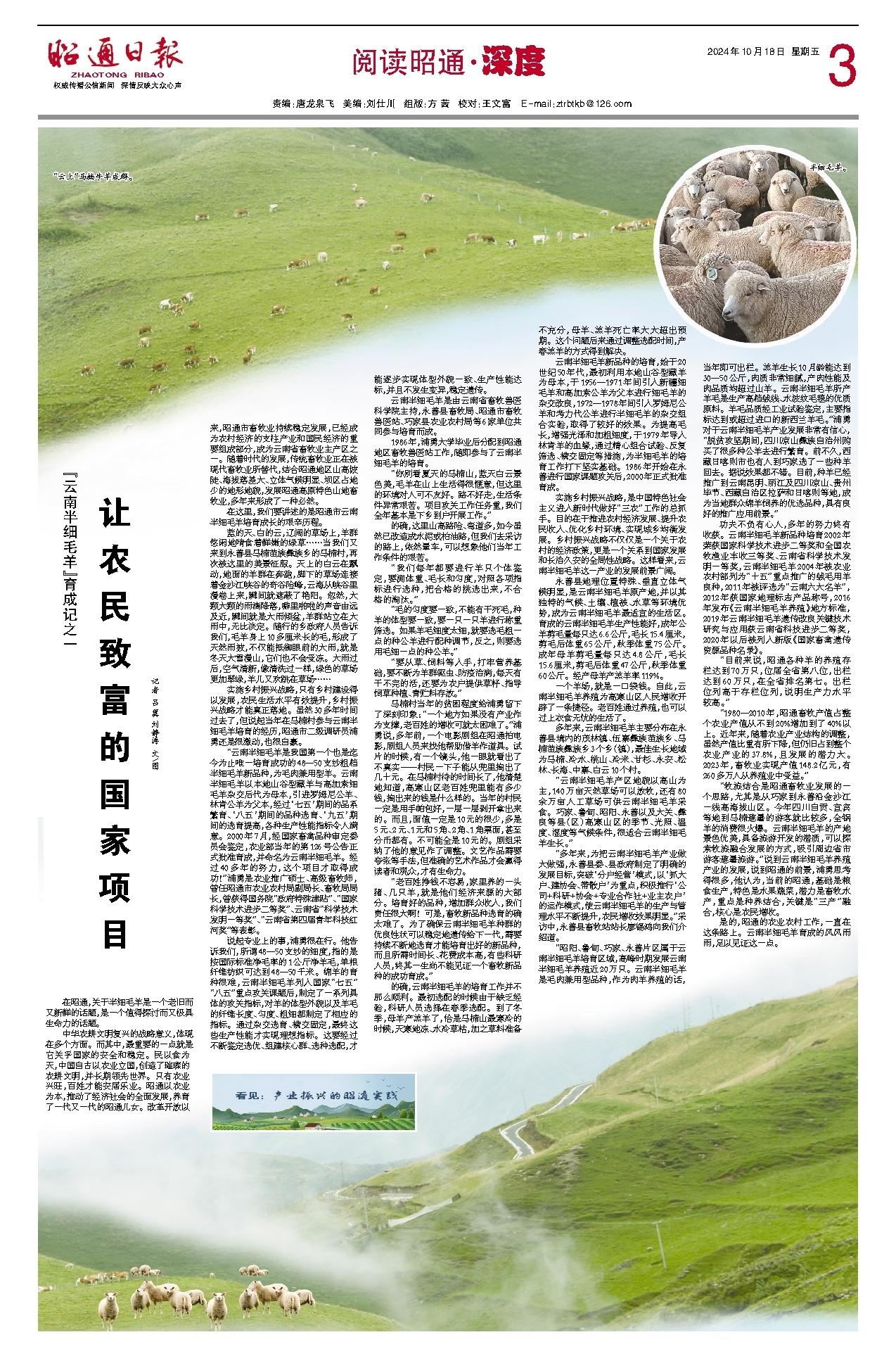 是的,昭通的农业农村工作,一直在这条路上。云南半细毛羊育成的风风雨雨,足以见证这一点。