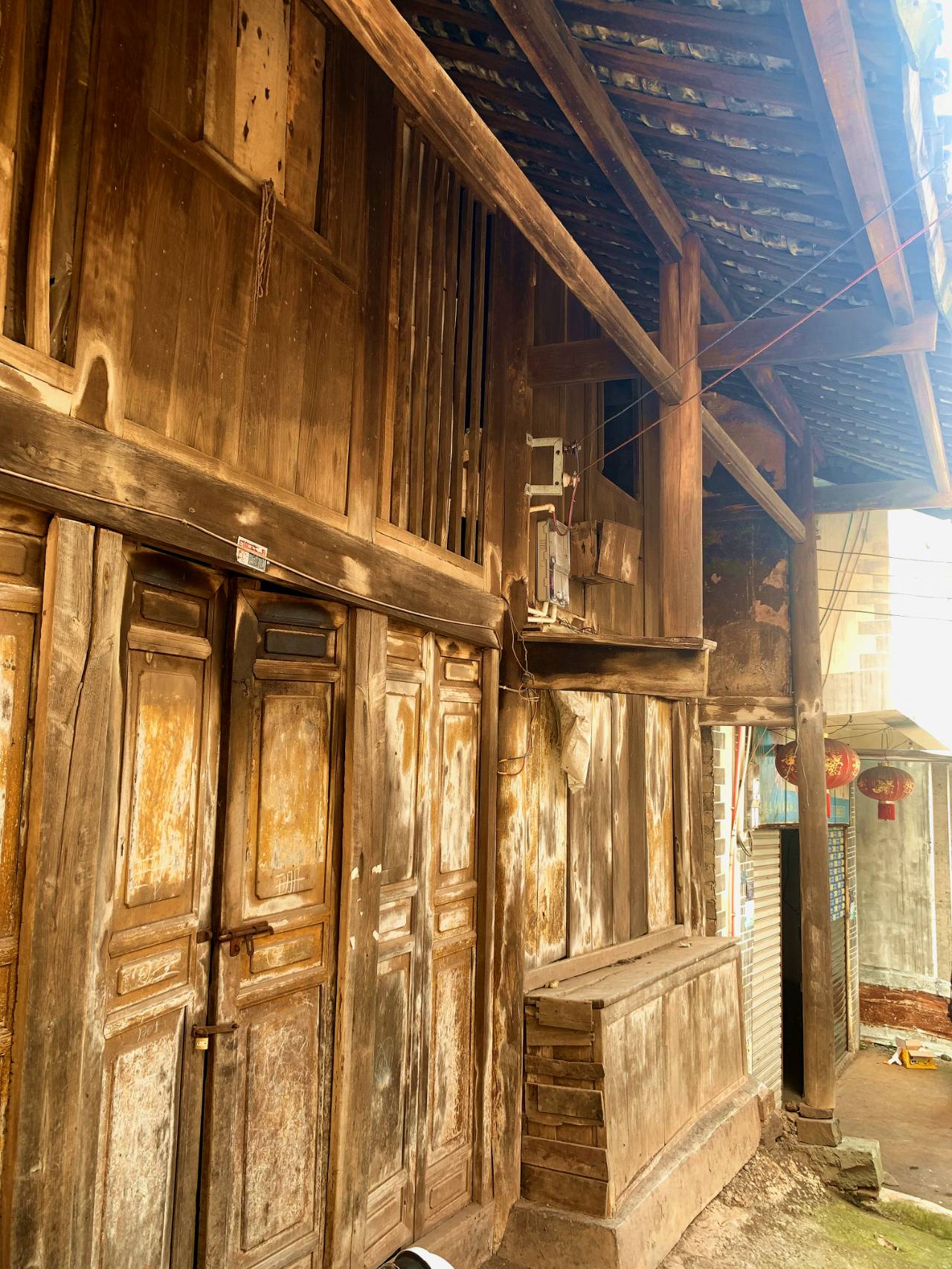 穿梭于互相连通或不连通的街道和小巷,高高矮矮的砖混楼房间,不时会冒出一间穿斗式木结构的瓦房。仔细打量这些房子,柱子、穿朽、椽子、檩子、木板壁……支撑起一间间房子的实木构件,遍布着岁月撕扯的裂口和时间蛀虫啃噬的细密洞孔,有些房子已经倾斜,檩子断裂,瓦片滑落。这些房子,历经上百年沧桑岁月,仿佛在土地上劳作了半生的老汉,肌肉松弛,青筋凸起,但骨架还很硬朗。在立街和横街上,这样的房子有30多栋,大多无人居住。