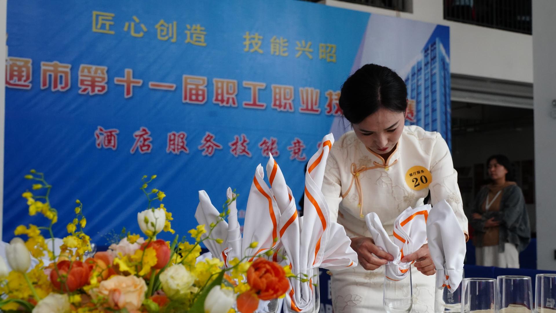 近日,昭通市第十一届职工职业技能大赛酒店服务技能竞赛在彝良县职业技术高级中学举行,来自昭通市职业教育中心和水富、大关、永善等县(市、区)的10支代表队43名选手参加了比赛。