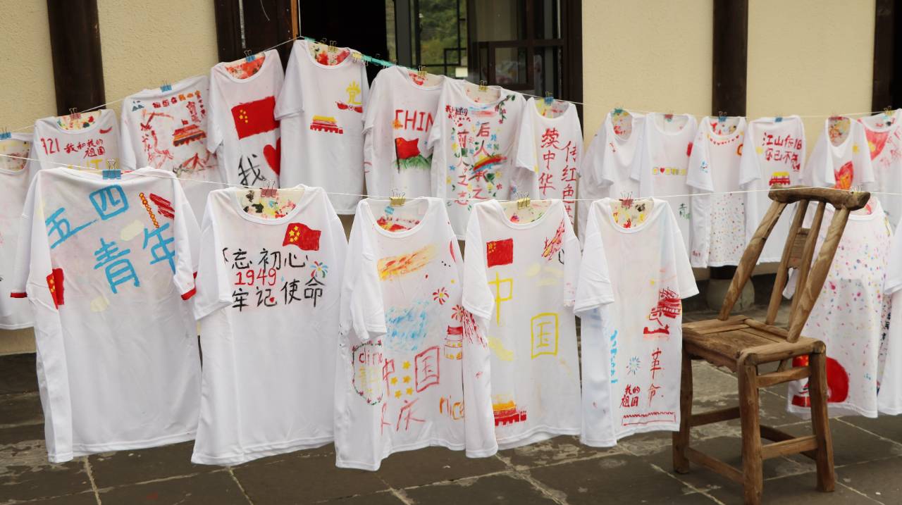 在蓝天白云下,威信县第三高级中学高一学生陶语馨手绘的红色文化衫格外具有特色和创意,表达了她浓浓的爱国情怀。“今天在研学的过程中画了红色文化衫、说了宣誓词、学习了红色文化,将激励自己不断前进。”陶语馨说。