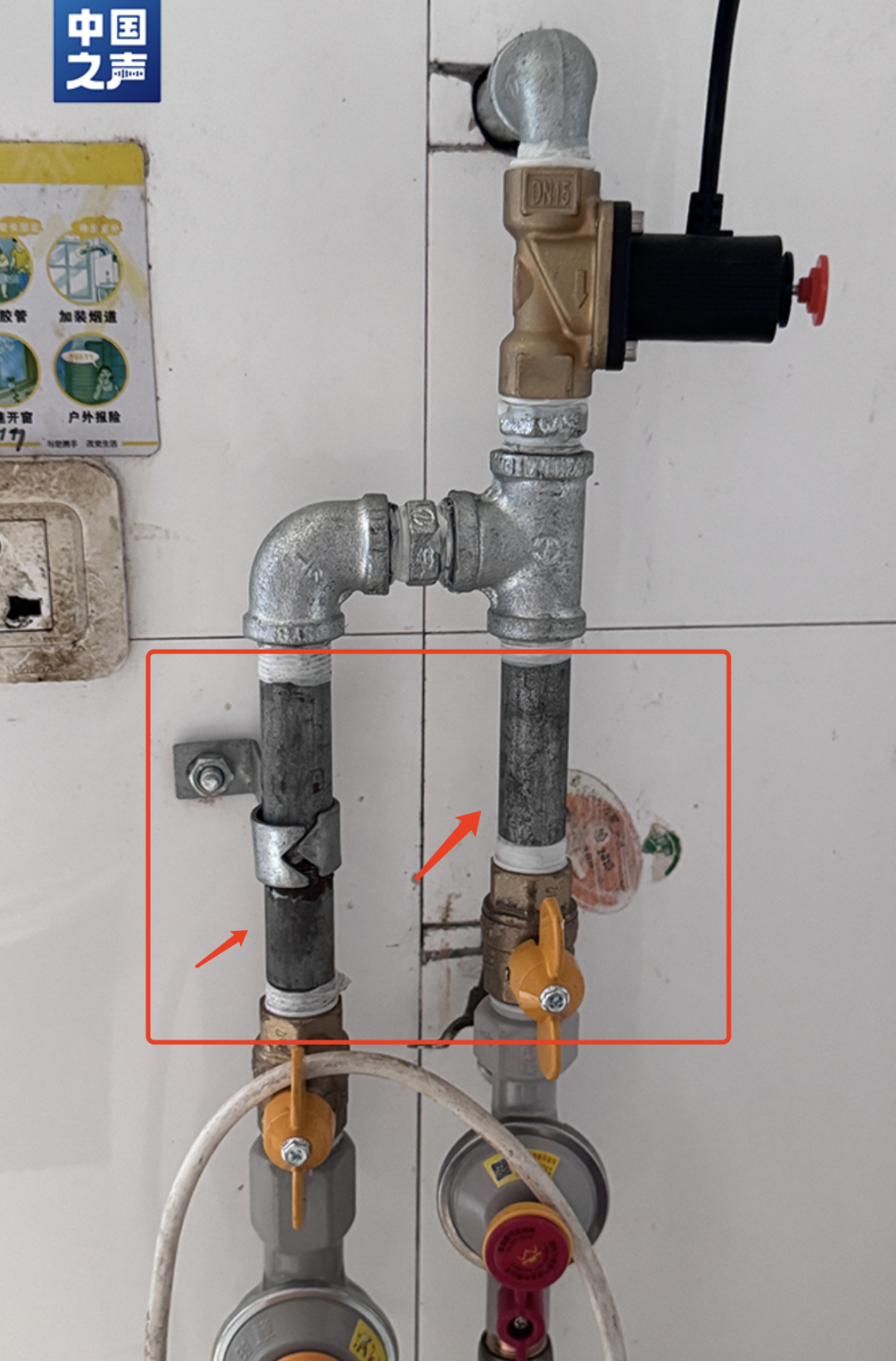 杜甫公寓的燃气安全“三件套”安装工作于今年8月完成,负责该公寓“三件套”的施工班组负责人苏靖强称,入户安装“三件套”时,他们从项目部领到的镀锌钢管就是旧的。“是以前其他人家拆下来的,拿回项目部,找小工喷一下漆,再拿回来给我们用。”