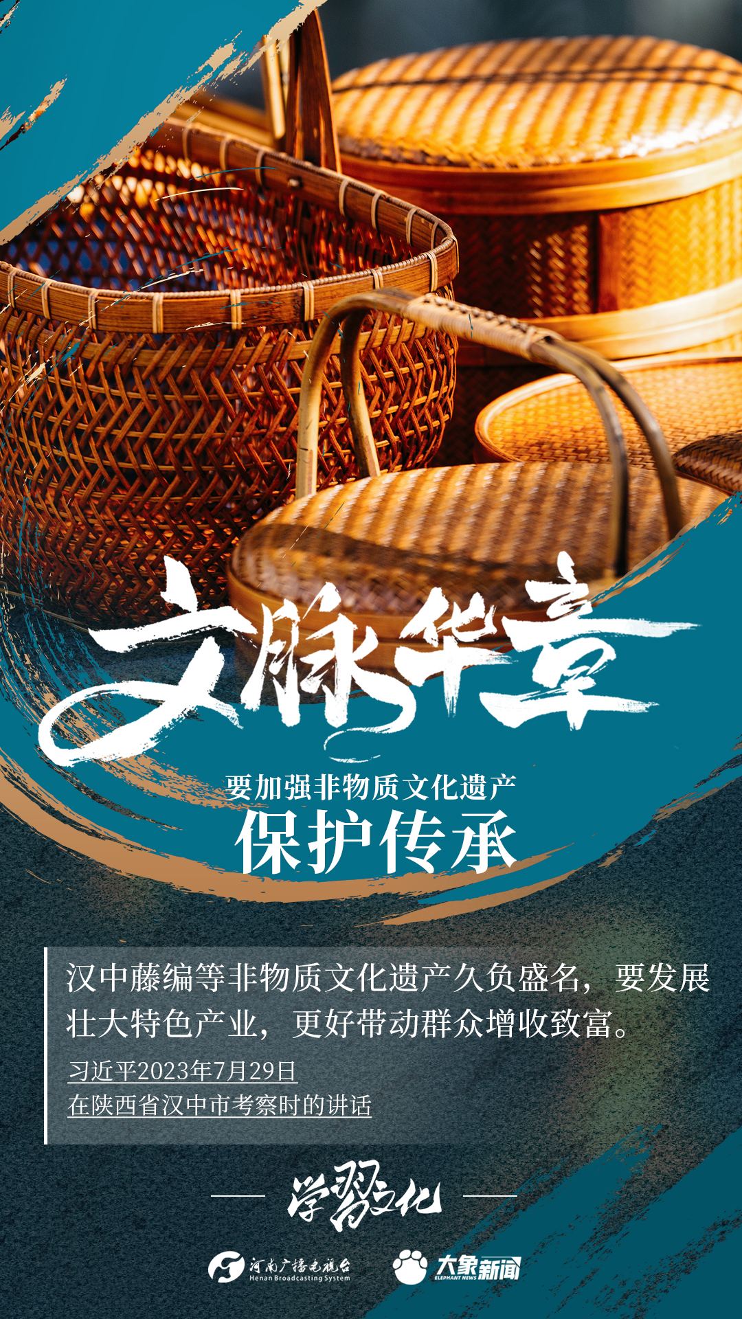 非物质文化遗产是中华优秀传统文化的重要组成部分,是中华文明绵延传承的生动见证,是我国各族人民宝贵的精神财富。习近平总书记十分关心非物质文化遗产的保护传承,多次强调“要扎实做好非物质文化遗产的系统性保护”“培养好传承人”等。大象新闻为您梳理,邀您一起学习、领悟、践行。