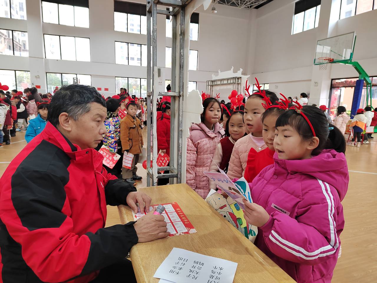 测评活动中,学生排队手拿闯关卡,在教师精心设置的11道“关卡”中开心闯关,闯关获得一颗颗闪亮的“星星” ,小学生手捧“星星”,敲起锣鼓分享获胜的喜悦。