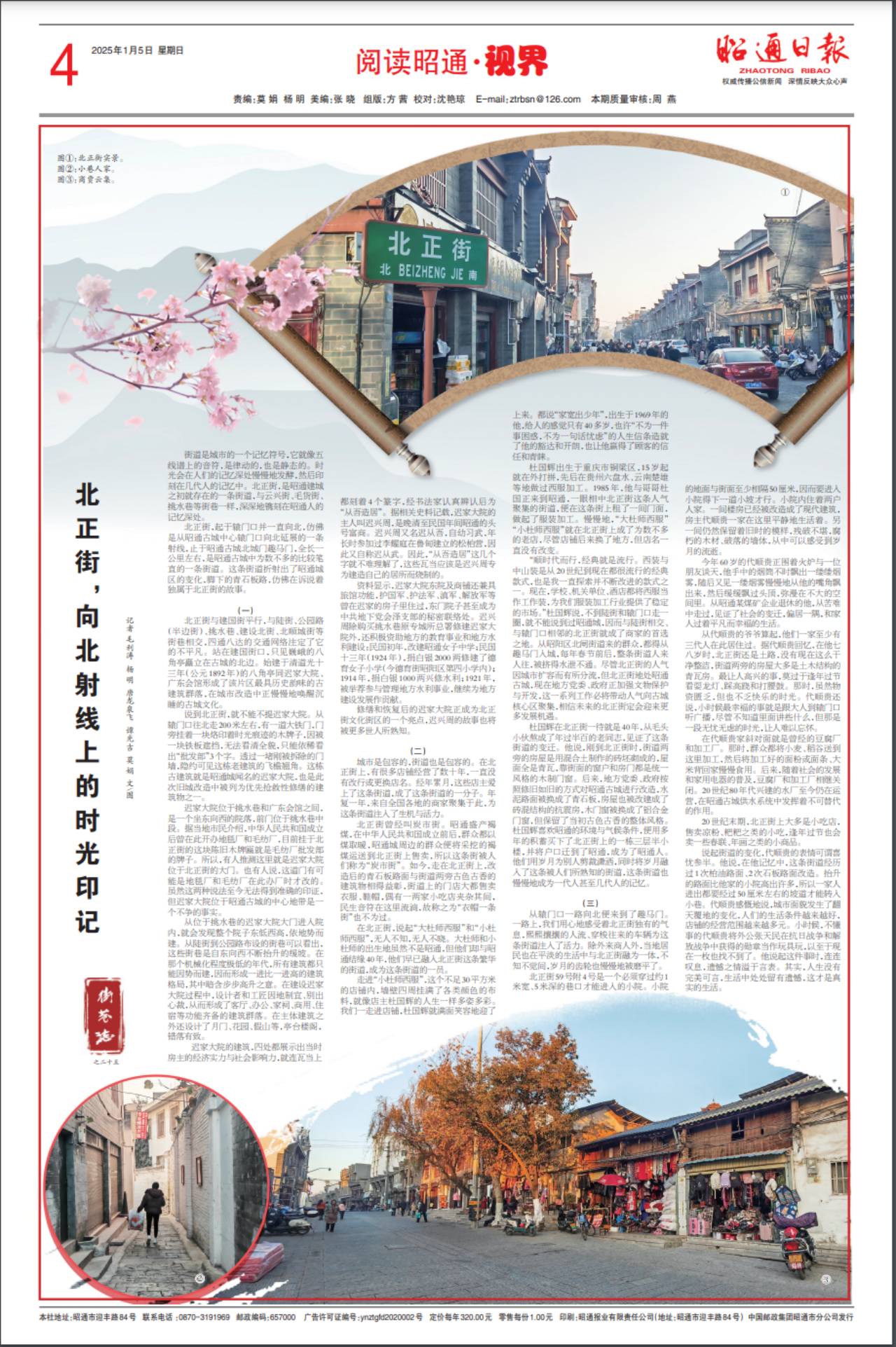 街道是城市的一个记忆符号,它就像五线谱上的音符,是律动的,也是静态的。时光会在人们的记忆深处慢慢地发酵,然后印刻在几代人的记忆中。北正街,是昭通建城之初就存在的一条街道,与云兴街、毛货街、挑水巷等街巷一样,深深地镌刻在昭通人的记忆深处。