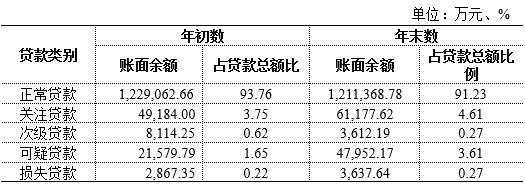 报告期末,本行各项存款余额197.40亿元,比年初增加14.55亿元;各项贷款余额132.77亿元,比年初增加1.69亿元;始终坚持服务“三农”的宗旨,以支农支小为导向,涉农贷款余额69.17亿元,授信1,000万元以下小微企业贷款余额21.67亿元,同比增速14.63%,授信1,000万元以下小微企业贷款户数9,594户,同比增加632户;不良贷款余额5.52亿元,不良贷款占比4.16%,实现净利润-65万元,成本收入比46.03%,拨备覆盖率103.67%,资本充足率9.98%,流动性比例97.54%。