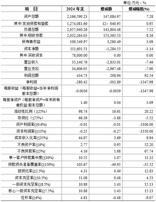 附表:昭阳农村商业银行2024年主要经营及风险指标