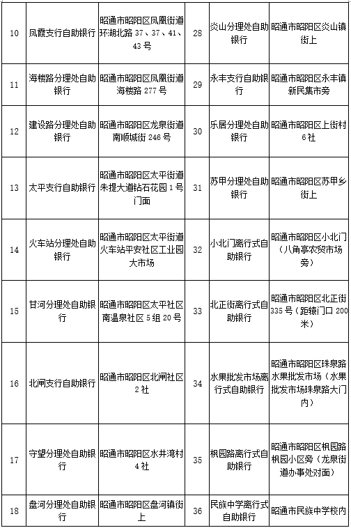 本行致力于提供多渠道的电子银行服务,为客户提供更便捷、高效的自助金融服务,包括:网上银行服务、手机银行服务、自助设备服务等。网上银行服务是云南省农村信用社为客户提供的,通过网络实现账户管理、转账汇款、缴费支付、信用卡、投资理财等业务于一体的在线金融服务,具有“安全、便捷、经济”的特点。使用方法:客户在互联网电脑上插入在我行各营业网点领取的网上银行电子安全设备“e安”(即USB-key),登录云南省农村信用社主页http://www.ynrcc.com/下载并安装证书驱动、安全控件,修改首次登录密码后正常登录网银,即可享受我行网上银行带给您的便捷、安全服务;手机银行服务是我行通过手机APP提供的数字化金融服务,用户可轻松查看网点地图,可实现转账汇款、账户管理、投资理财、信用卡、网上支付等多项金融功能,方便客户更好地随时随地享受云南省农村信用社专业金融服务。使用方法:客户在我行各营业网点申请开通手机银行后,在手机应用商店下载“云南农信”手机银行APP,按提示绑定设备、修改首次登录密码,正常登录“云南农信”手机银行APP后即可享受便捷的数字化金融服务;自助设备服务:本行共有36处自助银行,遍布昭阳区城区和乡镇,密织了一张自助金融服务大网,更好的为客户提供安全、便捷的7*24小时自助金融服务,客户通过自助设备可轻松实现取款、存款、转账、缴费等金融服务。自助银行服务地址如下: