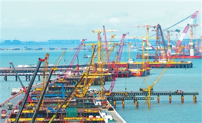 厦金大桥(厦门段)海上桥梁大规模装配化施工现场。 新华社记者 魏培全摄