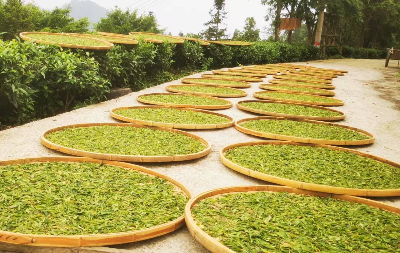 走进茶园基地,登高远眺,这里的美景尽收眼底:碧绿的茶园镶嵌在群山之中,四周有茂密的森林,头顶白云飘飘。茶园里,那些背着竹箩的妇女穿梭于茶树之间,灵巧的双手采摘着新鲜的茶叶;一条条弯弯曲曲的小径环绕其间,路旁绿树成荫;几间矮矮的茶叶作坊掩映在茶林间。