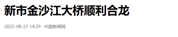 8月20日,位于云南省昭通市绥江县和四川省宜宾市屏山县交界处的新市金沙江特大桥正式合龙。该桥是连接川西滇北高速公路网的关键节点,建成通车后对畅通川滇两地交通、推动经济社会发展意义重大。