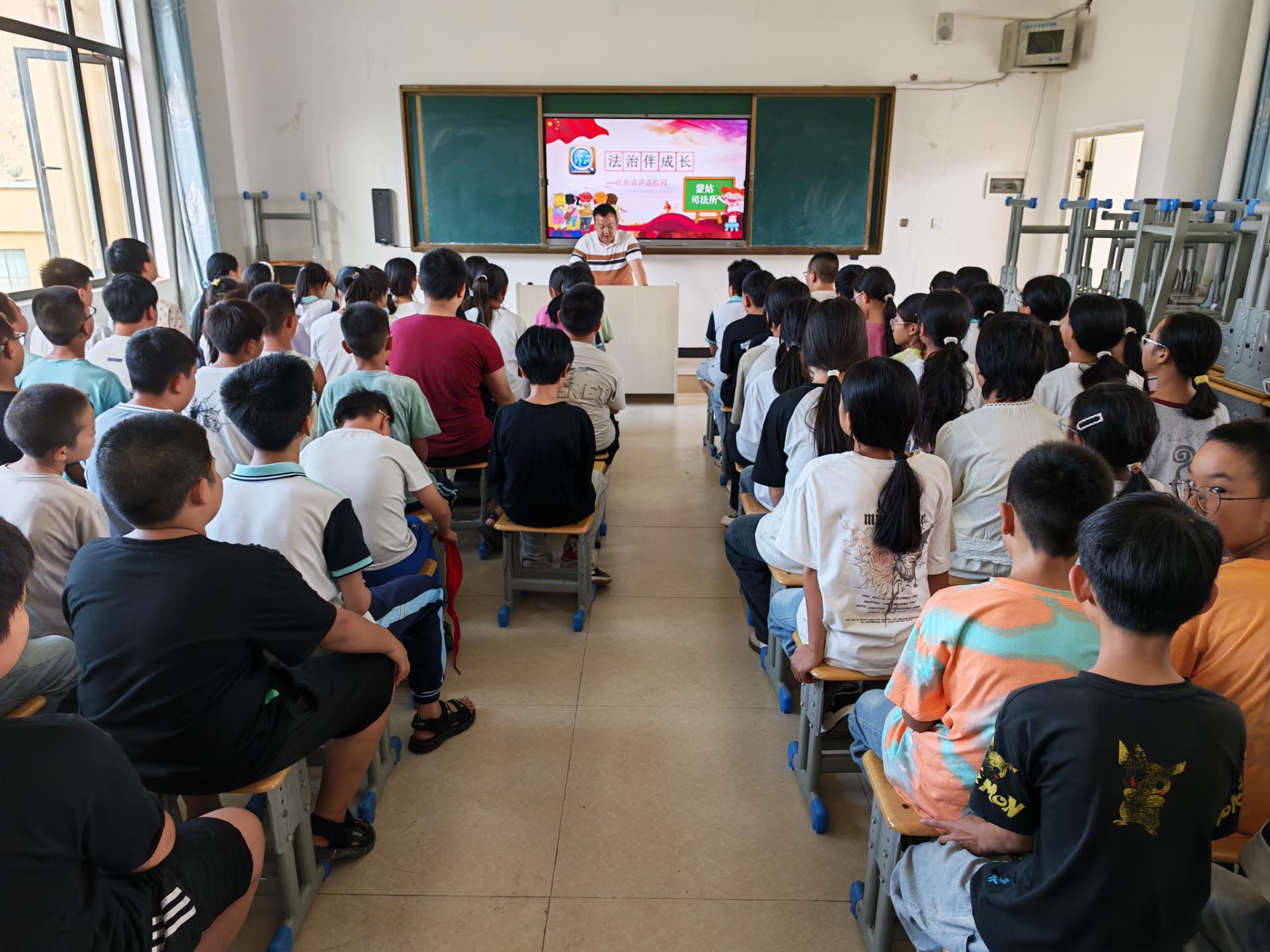 近日,巧家县蒙姑镇司法人员走进文笔小学,为学生们带来内容丰富、生动实用的法律知识小课堂,为青少年健康成长筑牢法治防线。同学们在一个个精彩绝伦的故事和案例中,了解什么是法律、不良行为、违法犯罪,以及遇到黑恶势力行为和校园霸凌行为时该怎么做。此外,司法人员还通过生动案例和PPT展示,向学生普及校园安全、交通安全、用电安全等各种安全小常识。今年以来,蒙姑镇高效推进普法强基工作,通过“三会一课”、群众会、院坝会等方式宣讲《中华人民共和国未成年人保护法》《中华人民共和国预防未成年人犯罪法》等相关法律4场次,发放法律知识手册和宣传资料600余份,切实为少年儿童营造良好的社会成长环境,同时结合“开学第一课”“利剑护蕾”等开展普法宣传进校园4场次。