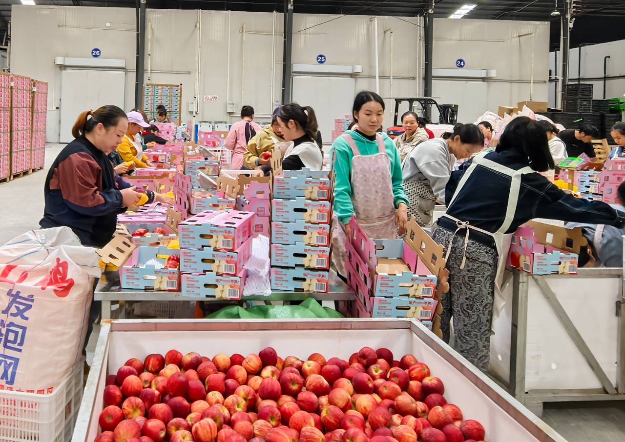 9月23日下午,参加“2025中国(昭通)苹果品牌大会暨创新发展论坛”“昭通高原特色苹果产销推介会”的专家、企业代表、采购商到现场观摩昭通苹果产业链发展情况。