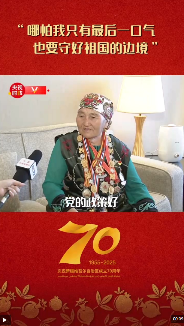 “人民楷模”国家荣誉称号获得者布茹玛汗·毛勒朵表达了她最想对总书记说的话:“我从19岁开始守边护边,哪怕我只有最后一口气,也要守好祖国的边境。”