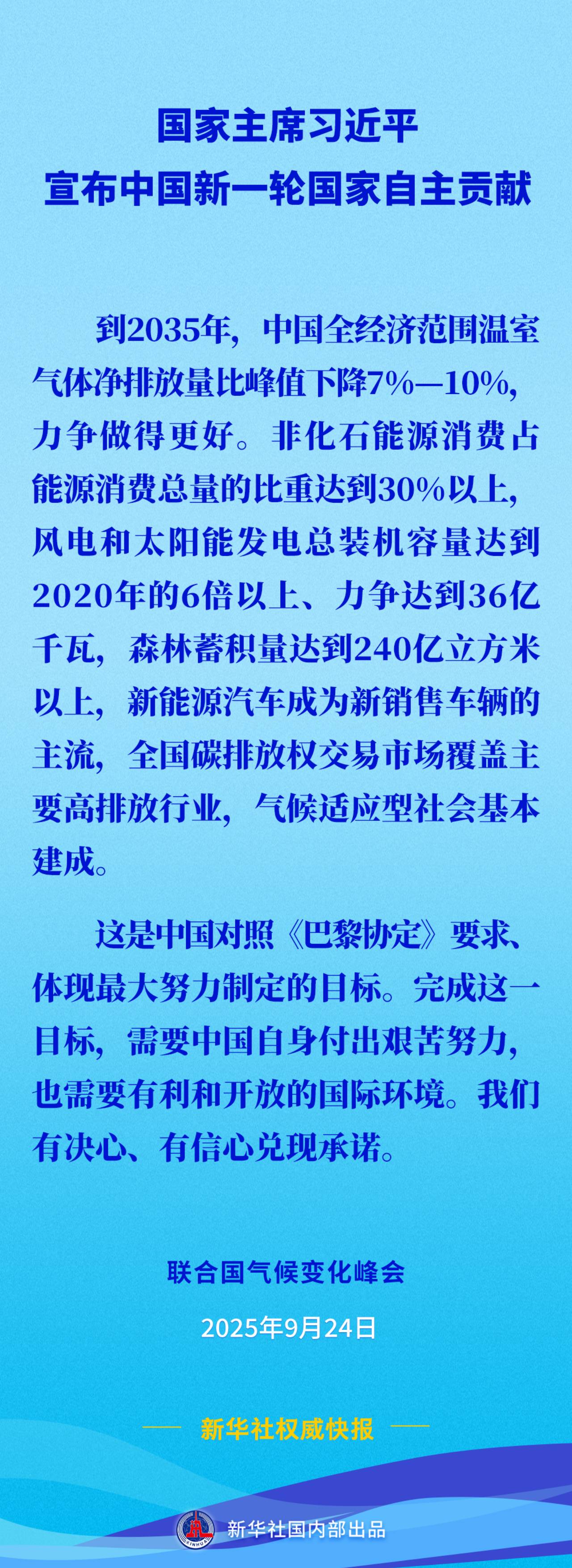 9月24日,国家主席习近平在联合国气候变化峰会发表视频致辞,宣布中国新一轮国家自主贡献。