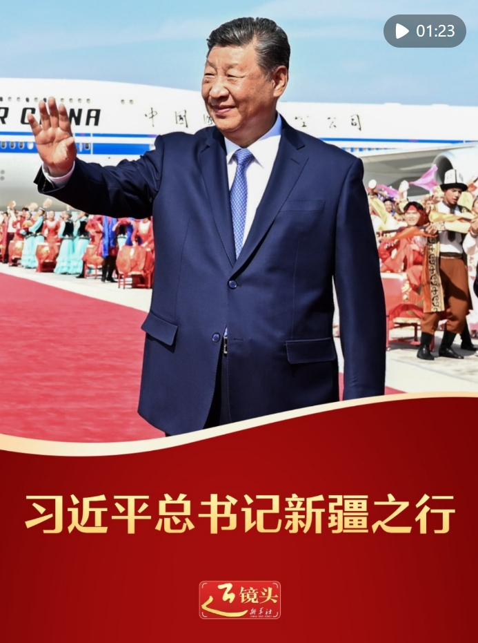 习近平作为中共中央总书记、国家主席、中央军委主席率中央代表团到新疆出席新疆维吾尔自治区成立庆祝活动,在党和国家历史上是第一次。