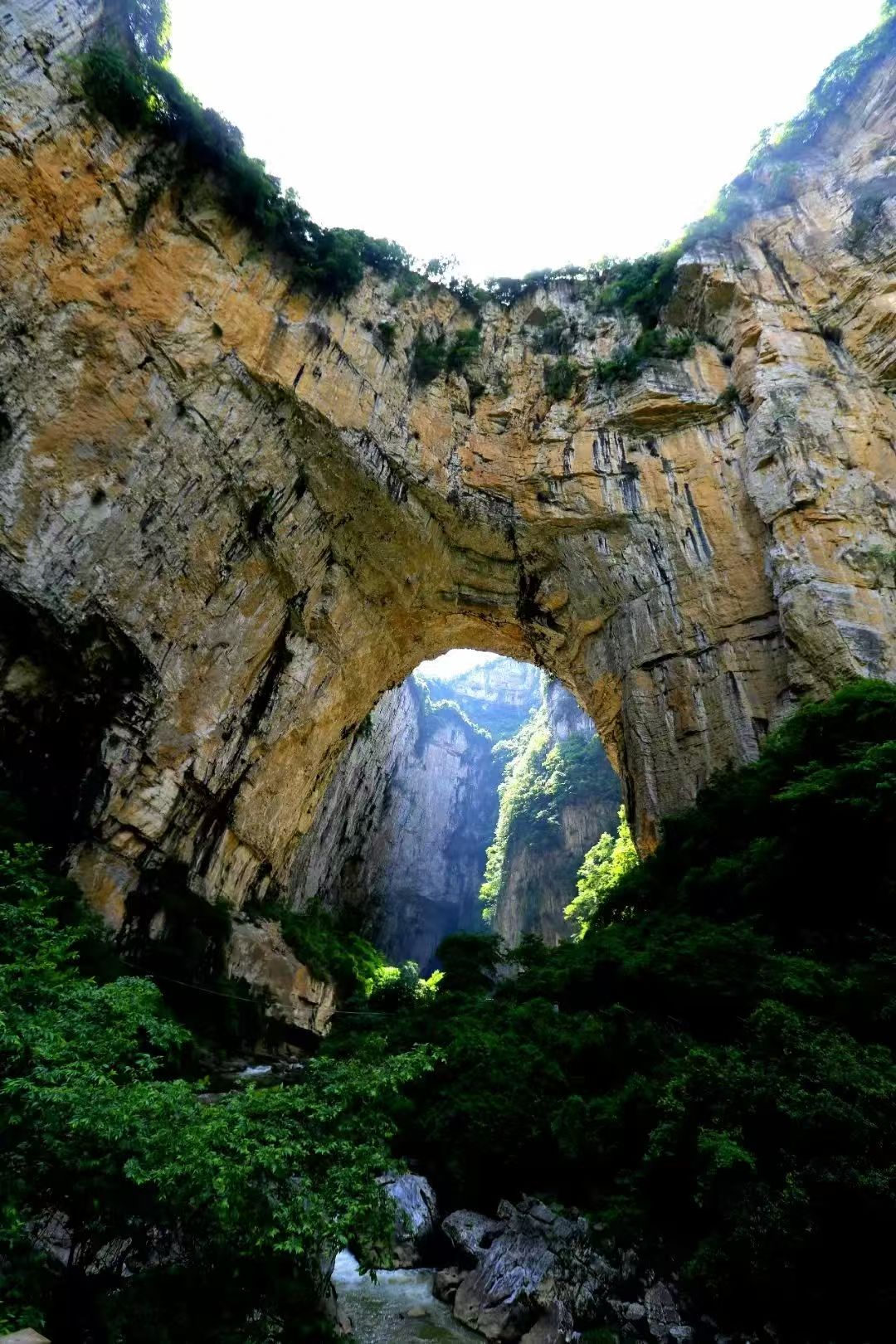 峡谷呈“一线三槽”地貌,两侧崖壁高达数百米,植被覆盖率达80%以上,绿意顺着岩壁蔓延,与谷底清澈的绮结河相映成趣。绮结河发源于织金凤凰山,时而奔腾穿峡,时而潜入地下,形成明暗交替的河道景观。游客可乘船顺流而下,看两岸绝壁如刀削斧凿,听水声潺潺伴鸟鸣清脆;也可沿岩壁栈道徒步,在“一线天”处仰望蓝天被压缩成细长丝带,于“天生桥”上俯瞰峡谷全貌,感受“人在画中游”的惬意。