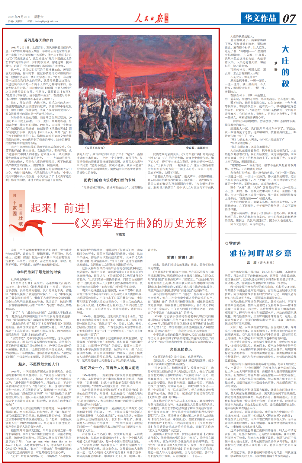 中华民族古老的自强不息精神,又在“起来!前进!”的历史语境中获得了鲜活的意蕴。穿越历史苍茫,“前进!进!”已将对侵略者的冲锋,化为向星辰大海的探索。