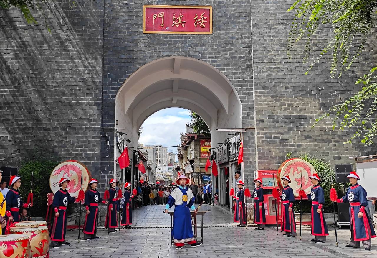 “古韵昭通 月满华诞”。10月1日下午1点,昭通古城抚镇门前人潮涌动,随着一阵清脆的马蹄声与悠扬的驼铃声响起,行进式大型巡游《遇见昭通之古城风云》震撼开演。
