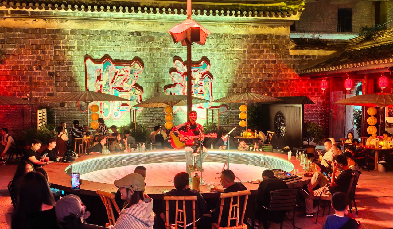 值得一提的是,古城内几家特色酒吧也早早迎来客流,李氏支祠内木质吧台前坐满了歇脚的游客,驻唱歌手弹唱着民谣,酒杯碰撞声与轻声交谈声交织,为古城增添了几分现代休闲气息。
