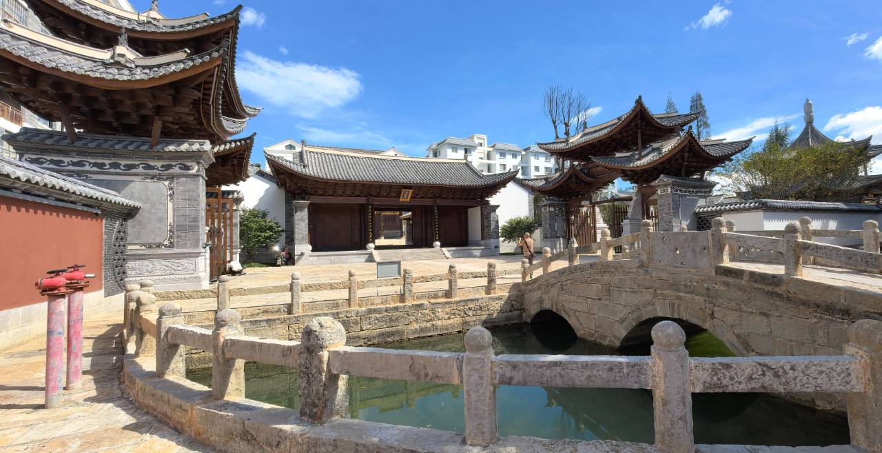 循着隐约琴声北行百余米,文庙朱漆大门在“中国红”映衬下愈发庄重。凤池书院内“书香昭通”书展正酣,讲解声朗朗。穿过后院月洞门,修缮一新的棂星门龙纹栩栩如生,泮池清水倒映“状元桥”,孟孝琚碑前,讲解员拂过模糊碑刻,将汉文化边疆传承的故事娓娓道来,阳光为这段千年历史镀上金光。隔壁贵州会馆里,昭通苹果、天麻、花椒摆满长桌,供游客免费品尝。重庆游客王女士赞叹道:“比超市买的甜脆多了!”