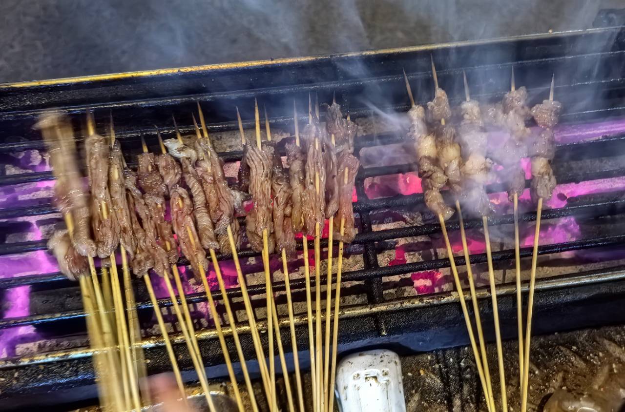 随巡游队伍拐进挑水巷,烟火气扑面而来。油糕饵块摊前长队如龙,摊主李大姐舀米浆入模,撒上葱花、火腿丁炸至金黄,搭配软糯饵块与自制辣酱,外酥里糯的口感让游客赞不绝口。旁边小肉串摊炭火正旺,肉串滋滋冒油,撒上辣椒面、孜然,香气飘出半条街。李大姐手脚麻利地忙活,笑着说国庆每天能卖几百份,自家老宅经改造变成商铺,守着家门口就能赚钱,日子越过越有奔头。
