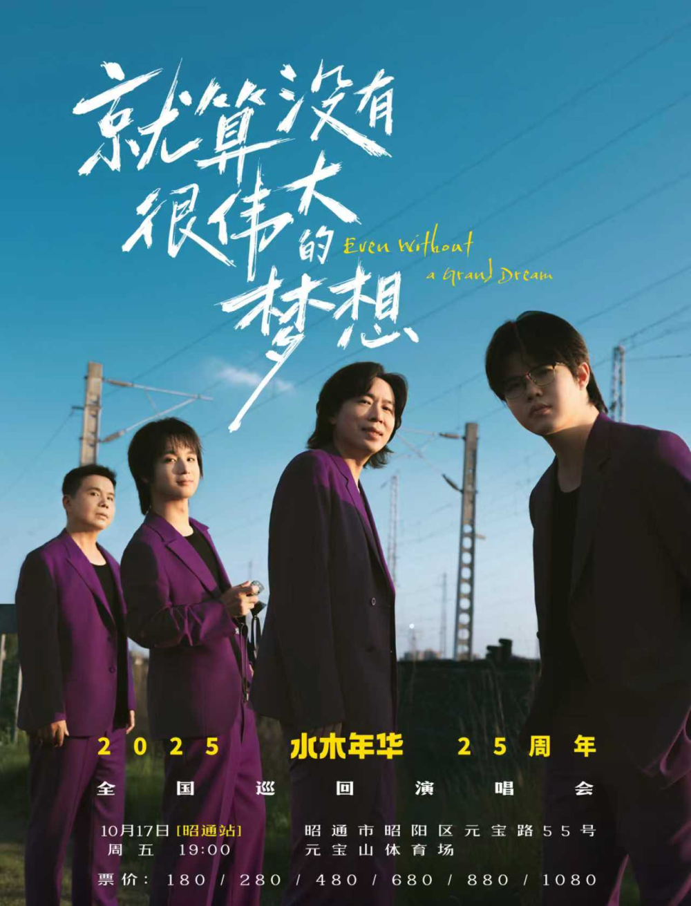 2025年10月17日,“就算没有很伟大的梦想”水木年华25周年巡回演唱会将在昭通元宝山体育场温情开唱。这支陪伴了无数人青春的音乐组合,将用他们真挚的歌声,带领昭通观众重温那些充满诗意的青春岁月。