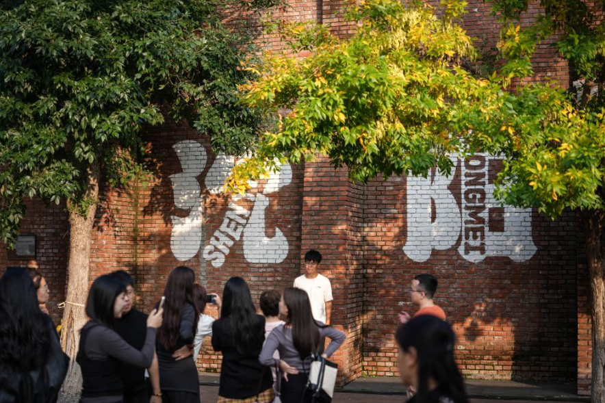 图为10月1日,游客在沈阳红梅文创园游览。新华社记者 潘昱龙 摄