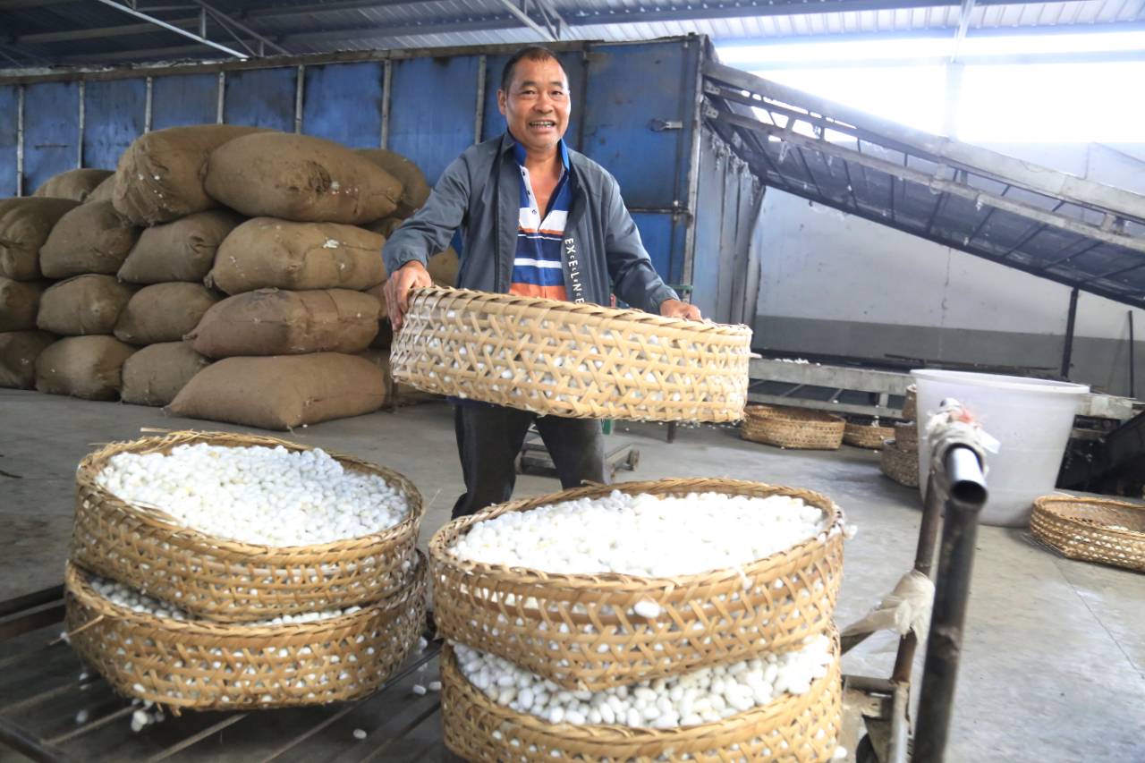 擦了擦额头的薄汗,李诗现指着满筐蚕茧笑得实在:“我养蚕28年了,一家人的开支就靠养蚕,现在娃娃打工去了,我们老两口带孙子、照顾父母,日子踏实得很!”