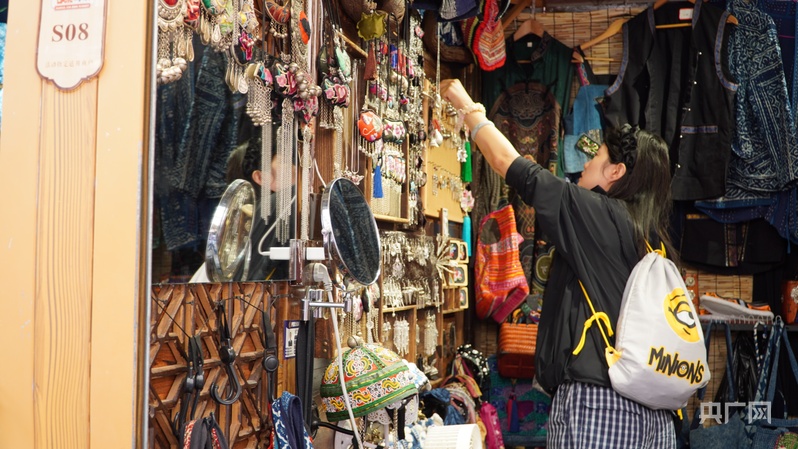 游客挑选民族饰品(央广网记者 魏文青 摄)