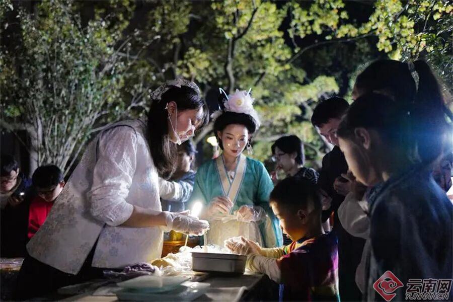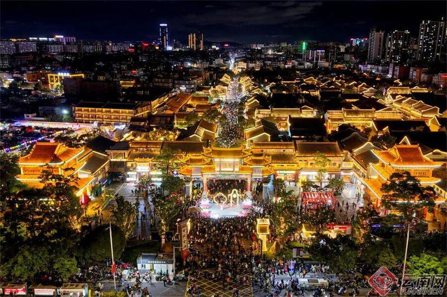 昆明官渡古镇广场上,月色铺了层柔纱,光影交错间,四方游客踏月而来,共赴一场属于春城的中秋浪漫;