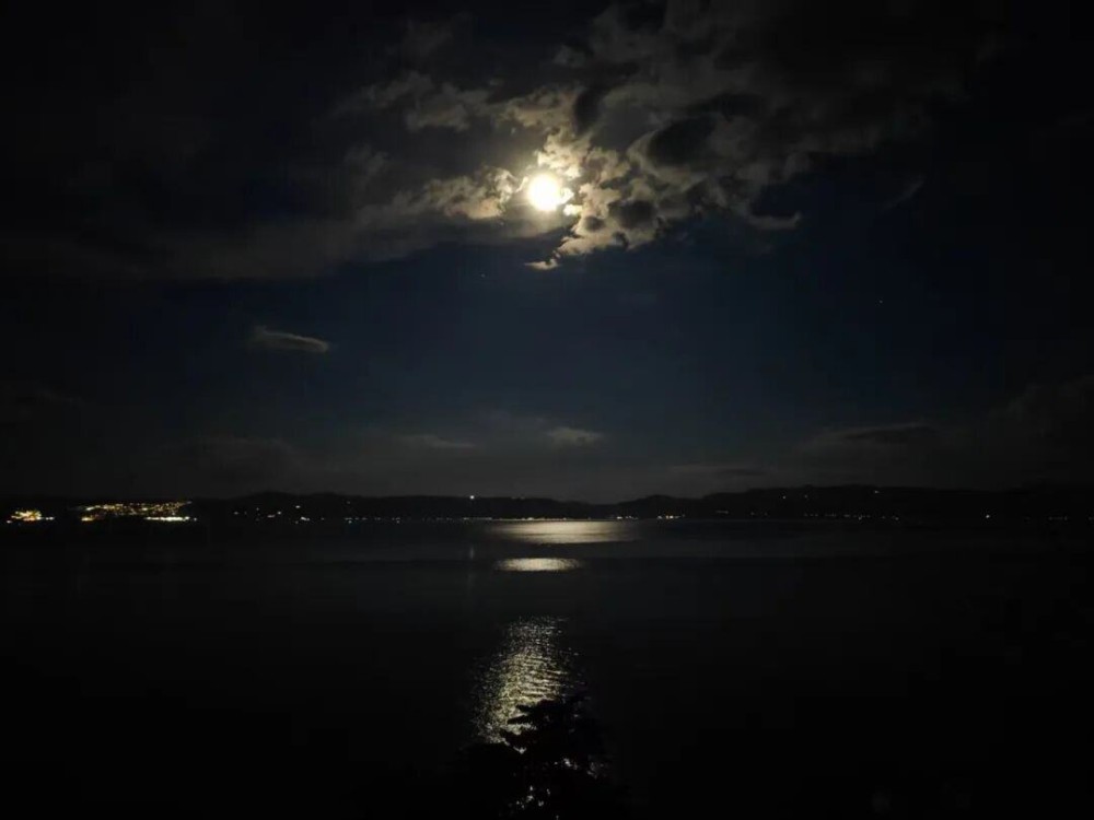 大理白族自治州洱海的夜,风静浪平。月从苍山背后升起,缓缓沉入水中,天上一个月亮,水里一个月亮,仿若双生。