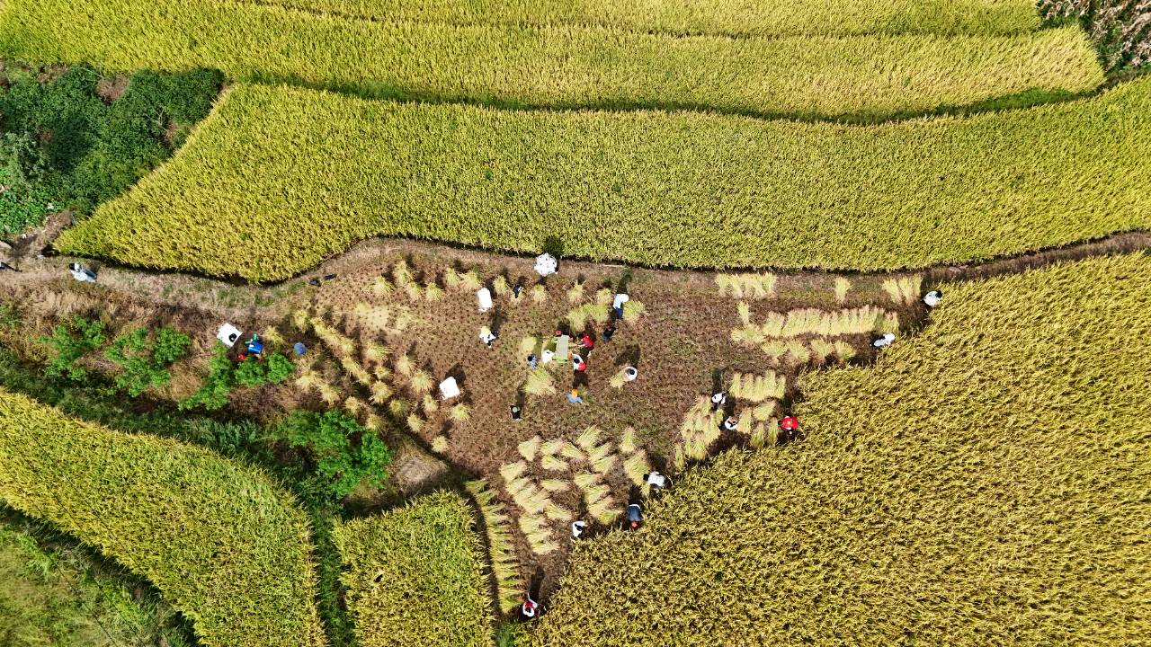 2025-10-08 10:58风拂稻浪千层金,雨润玉米万仓粮。又是一年丰收季,彝良县稻谷、玉米等农作物进入大面积采收期。清风微拂,连片的稻田里,沉甸甸的稻穗压弯了稻秆,随风掀起金色涟漪;无垠的玉米地里,饱满的果穗裹着棕红流苏,泛着油亮光泽。阳光下收谷机在田间轰鸣,农民在田间忙碌丰收的场景勾勒出一幅幅充满喜悦与希望的“金色画卷”。