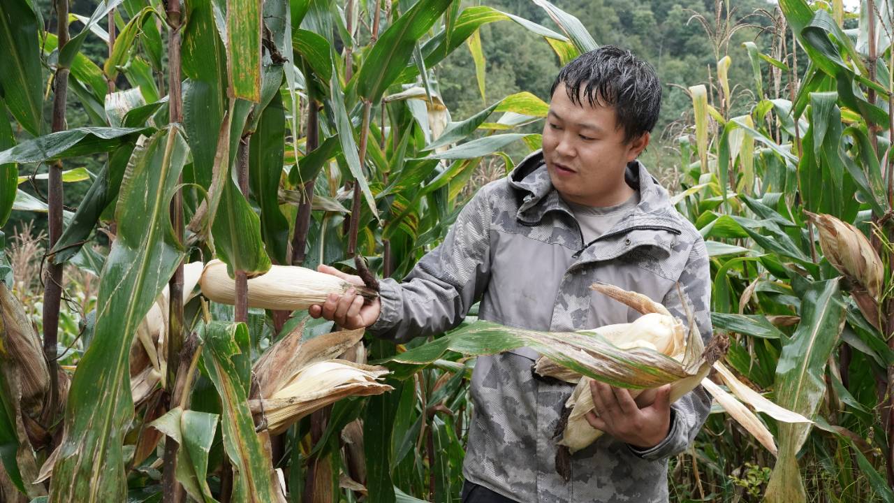 清晨的露珠还未蒸发,彝良县荞山镇猴街村的姜林瑞早已在自家的玉米地里开始了一天的劳作,只见他拨开浓密的玉米叶,顺手掰下一个玉米棒,撕开金黄的外壳,颗粒饱满、排列紧密的玉米粒便露了出来,在阳光下泛着象牙般的光泽。“我家种了七八亩玉米,今年天气、管理都比较好,今年一共能收一万斤左右,是个丰收年。”姜林瑞看着饱满的果穗,脸上掩不住的喜悦。