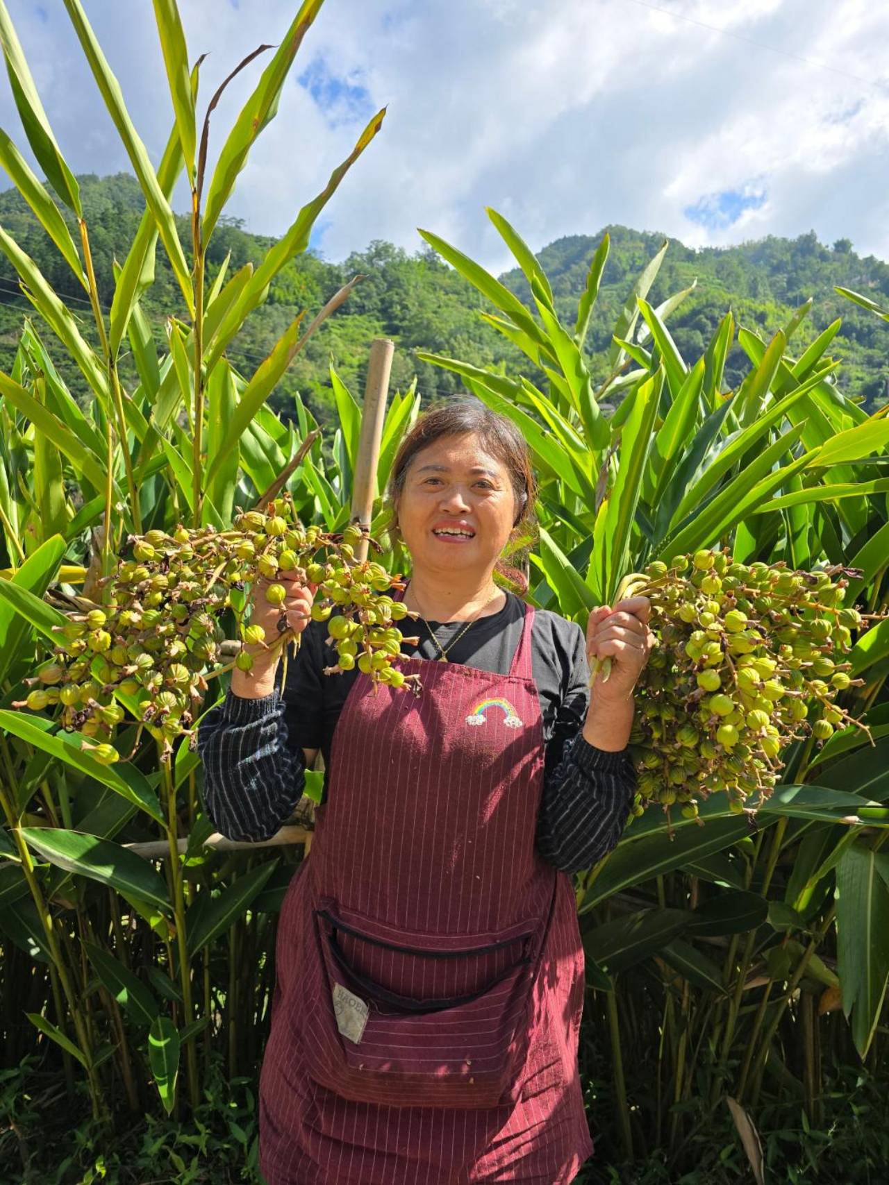 “今年雨水足,砂仁结得密,我家几亩地的砂仁卖给收购商,能卖一万多元!”种植户王天蓉正在将砂仁装袋,言语间满是笑意。