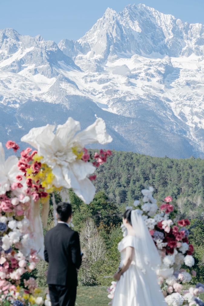 与传统在家乡举办的婚礼不同,目的地婚礼的核心在于“旅行”与“仪式”的结合,将婚庆典礼和蜜月旅行融为一体,体验感较强。这类婚礼的地点往往是风景如画或有特殊意义的地方,有着“诗和远方”的云南正契合这一特点。