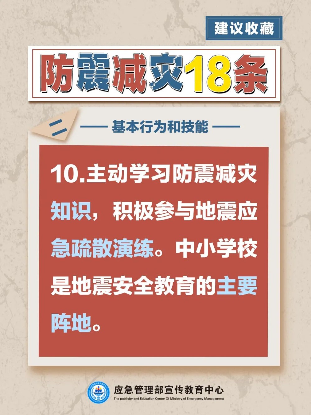 2025-10-10 23:02第17个全国防灾减灾日,中国地震局发布《防震减灾基本知识与技能大纲》(简称“防震减灾18条”)。