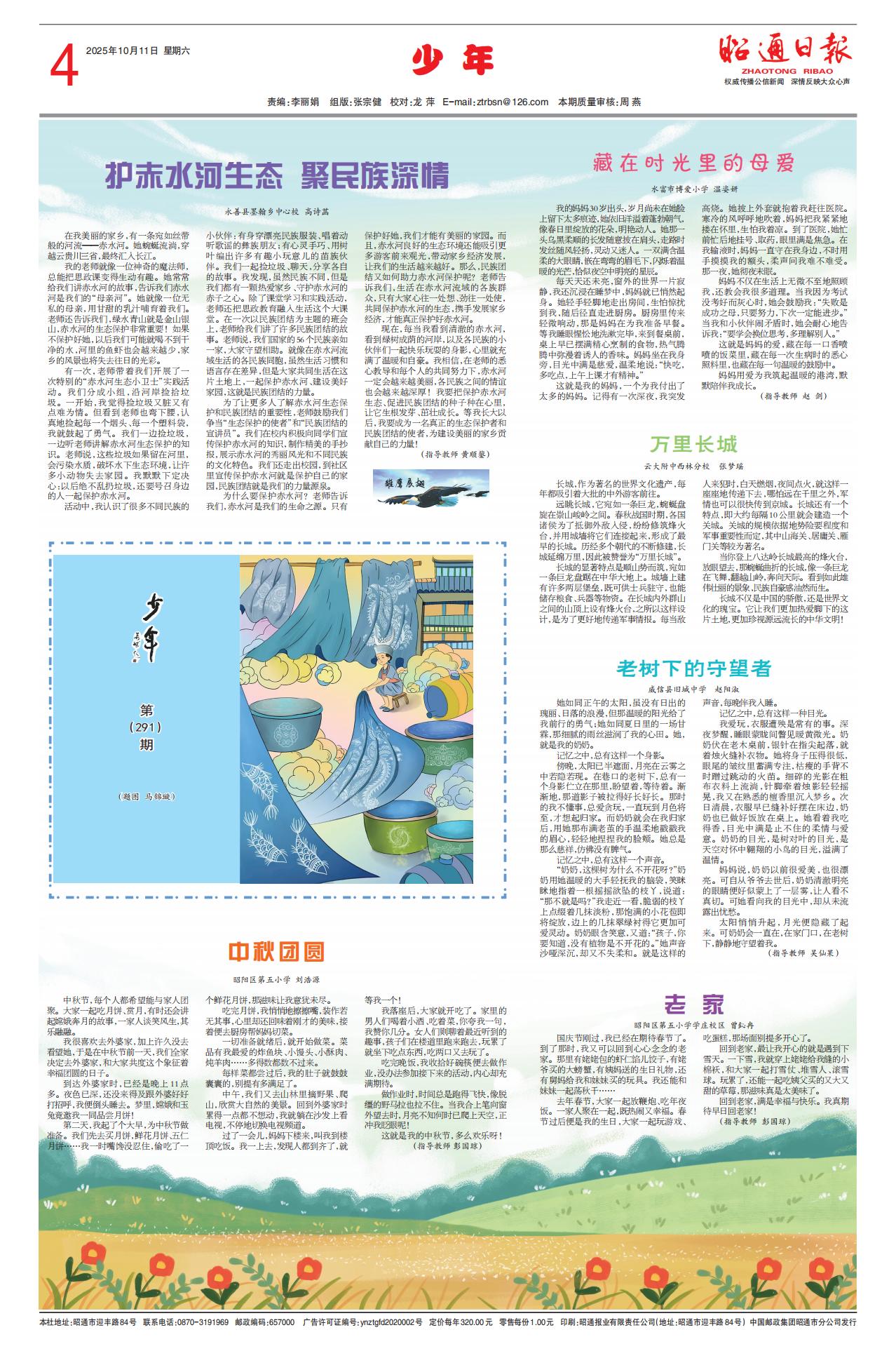 活动中,我认识了很多不同民族的小伙伴:有身穿漂亮民族服装、唱着动听歌谣的彝族朋友;有心灵手巧、用树叶编出许多有趣小玩意儿的苗族伙伴。我们一起捡垃圾、聊天,分享各自的故事。我发现,虽然民族不同,但是我们都有一颗热爱家乡、守护赤水河的赤子之心。除了课堂学习和实践活动,老师还把思政教育融入生活这个大课堂。在一次以民族团结为主题的班会上,老师给我们讲了许多民族团结的故事。老师说,我们国家的56个民族亲如一家,大家守望相助。就像在赤水河流域生活的各民族同胞,虽然生活习惯和语言存在差异,但是大家共同生活在这片土地上,一起保护赤水河、建设美好家园,这就是民族团结的力量。