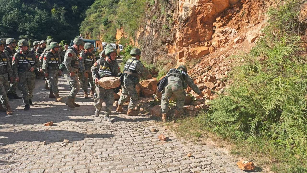 鲁甸县人武部立即启动地震救援应急预案,安排先遣组5人到火德红镇震区核查灾情,同时人武部组织民兵应急力量55人、车辆7辆、救援器材装备80余件(套)火速赶赴震区开展应急处置,清理道路落石。