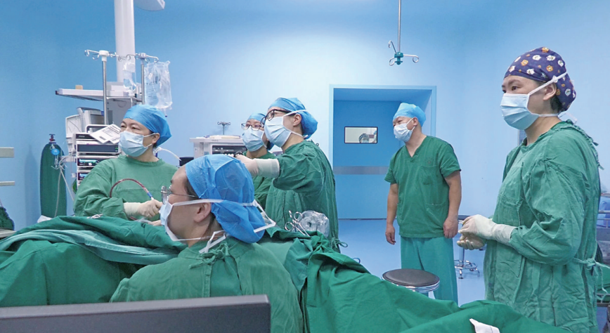 活动当天上午,在永善县中医医院(桐堡院区)手术室内,一台腹腔镜下子宫全切术正有序进行。上海市闵行区中心医院妇产科主任徐灵一边精准操作器械,一边开展手术带教,详细讲解每一个关键步骤。这不仅是一台手术,还是一堂手把手传授技艺的临床教学课。