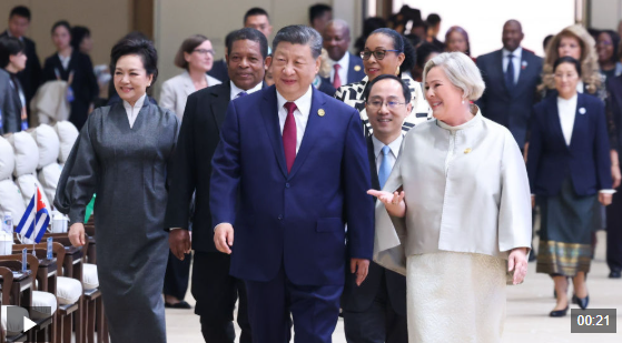 独家视频丨习近平和彭丽媛同出席全球妇女峰会的国际贵宾集体合影