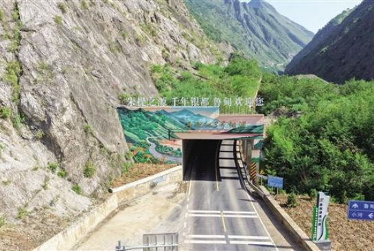 这条路不仅绿意盎然,还承载着深厚的文化底蕴。沿线巧妙融入了“朱提之源、千年银都”的文化内涵和龙头山镇的感恩奋进精神——在甘家寨隧道出口等特色路段,设置了停靠点、观景平台与彩虹步道;200平方米的文化创意墙绘,以斑斓色彩讲述着本土故事;112米防滑彩色路面的铺设,在保障安全的同时增添了几分趣味,让游客在鲁甸19.9℃的清凉中,真切感受“车在景中行,路自绿中延”的诗意。“路更好了,风景也更美了,我们边走边玩,特别惬意。”来自成都的游客竖起大拇指称赞道。