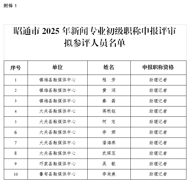 附件:1.昭通市2025年新闻专业初级职称申报评审拟参评人员名单;
