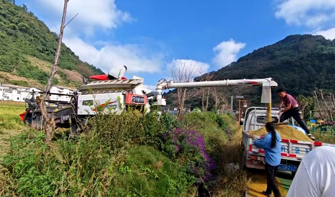2025-10-15 10:08在盐津县牛寨乡万和村的旱稻种植基地里,一台收割机正平稳地穿梭于田间。沉甸甸的稻穗被迅速“吞”入机身,脱粒后的金黄稻谷则通过输送管,源源不断地“吐”进在一旁等候的运输车中。这场高效有序的机械化作业,不仅标志着万和村的旱稻喜获丰收,还将颗粒归仓的美好愿景变为现实。