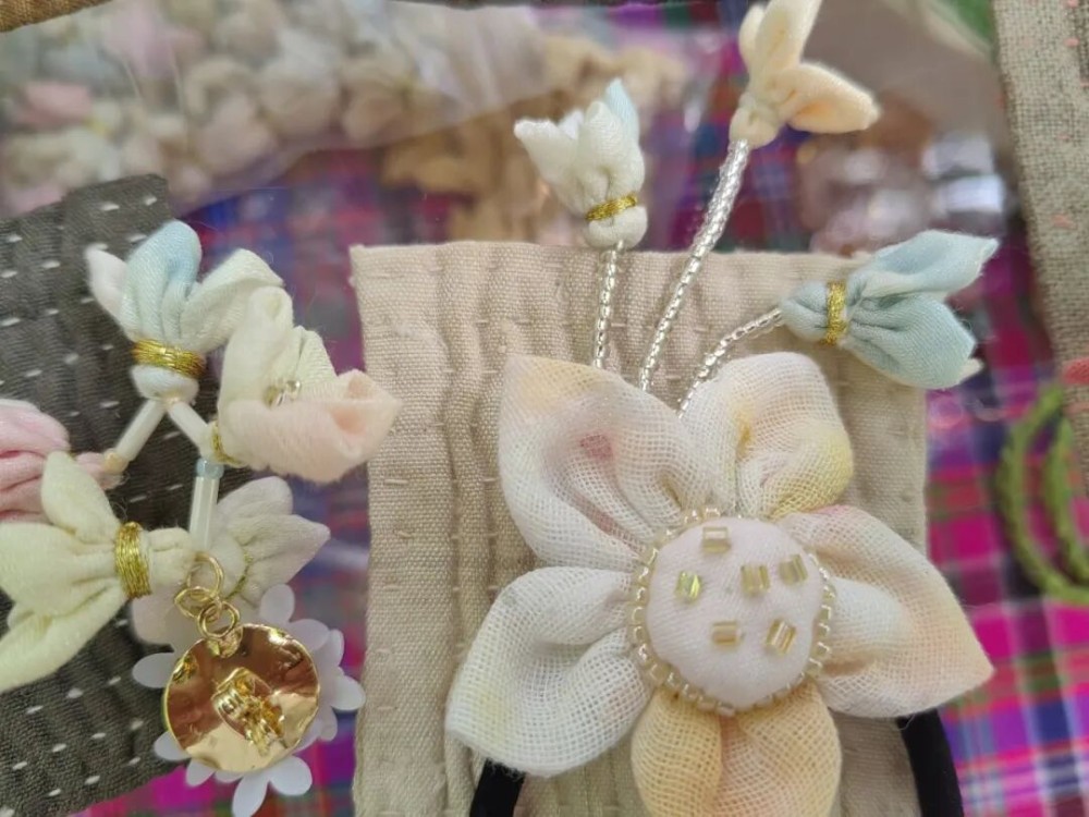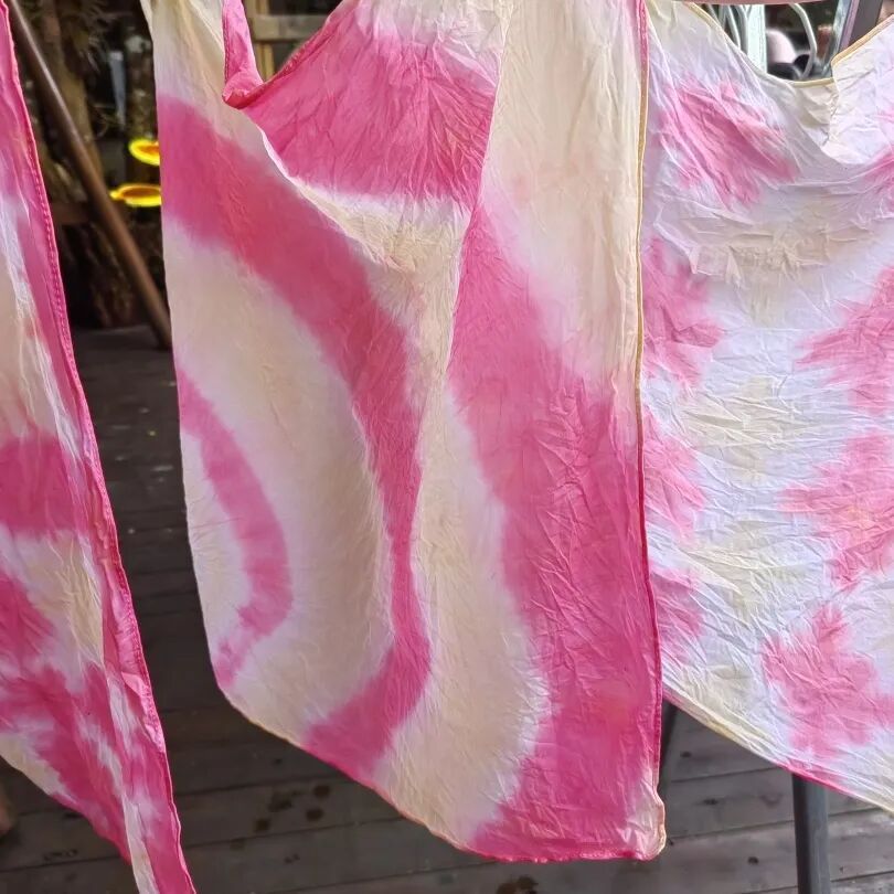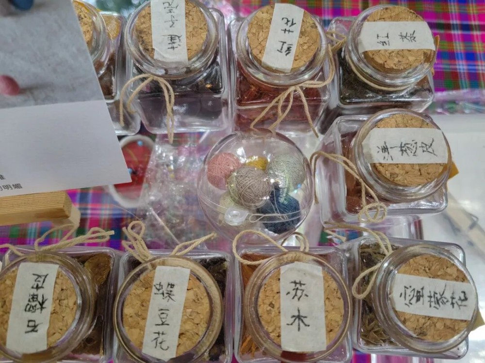 “我们常见的红色来自苏木、红花或茜草;温暖的黄色取自洋葱皮、栀子或云南特有的密蒙花(染饭花);而清新的绿色,则多通过‘套染’工艺实现,例如先将布匹染上栀子黄,再叠染蓝草蓝,便能呈现出充满生机的嫩绿色。”张珍解释道,甚至像石榴皮这样的植物,也能煮出淡绿偏黄的独特色调,每一种植物的色彩都蕴含着自然的秘密。