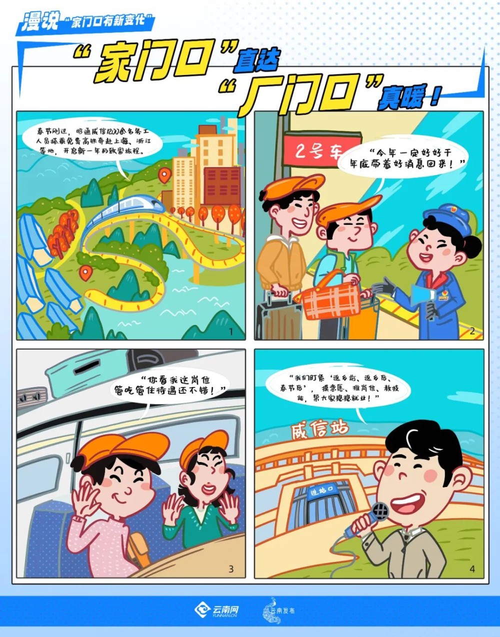 威信县三桃乡新街村村民任任感受到了实实在在的帮助,更加坚定了在外打拼的信心:“以前每年出门都很费力,倒车需要折腾几天,现在交通发展好了,又有高铁专列出去,没有理由不好好工作。”