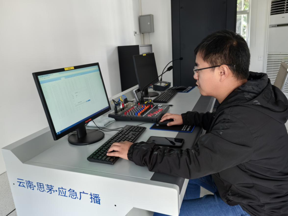 工作人员利用应急广播平台播送应急信息 云南省广播电视局 供图
