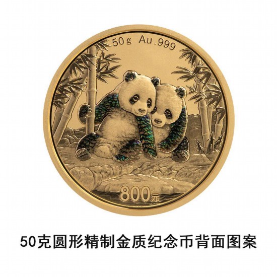 50克圆形金质纪念币为精制币,含纯金50克,直径40毫米,面额800元,成色99.9%,最大发行量40000枚。