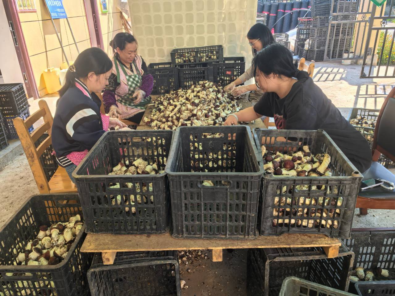2025-10-17 12:34今年,镇雄县在马厂国有林场引入赤松茸种植,发展林下经济。进入10月,实验示范基地的赤松茸开始全面采收。
