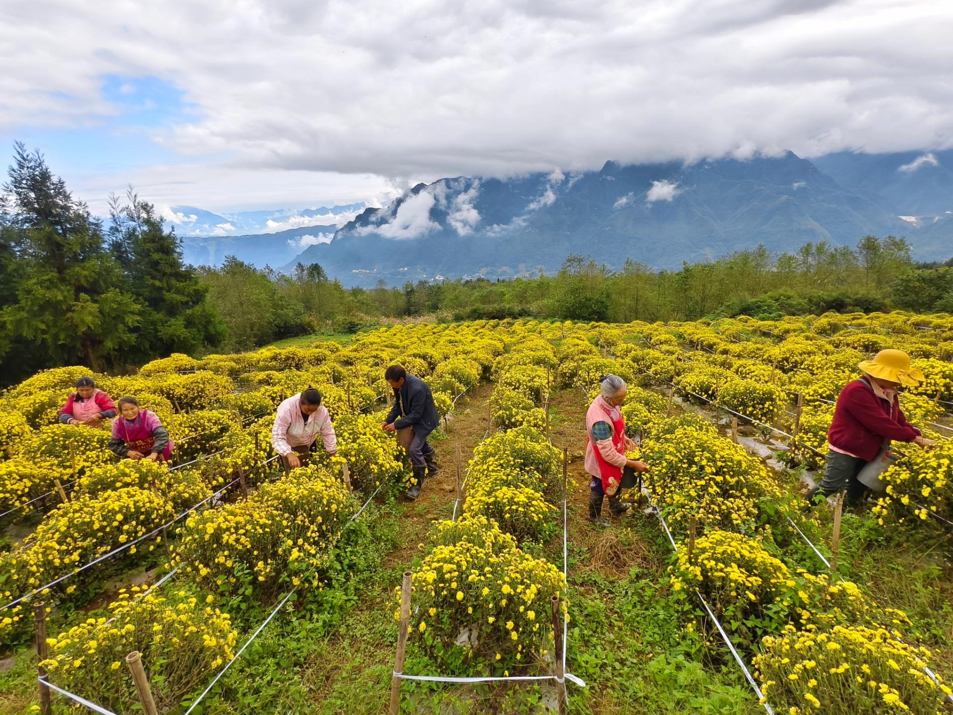 据悉,今年新拉村种植的皇菊预计亩产干花250斤,目前市场价格稳定在每斤50元左右,且销售渠道畅通。同时,新拉村采取“合作社+农户”的发展模式,由合作社统一流转土地,并聘请周边村民参与种植、管护与采收,让大家获得土地流转金和务工工资两份收入。